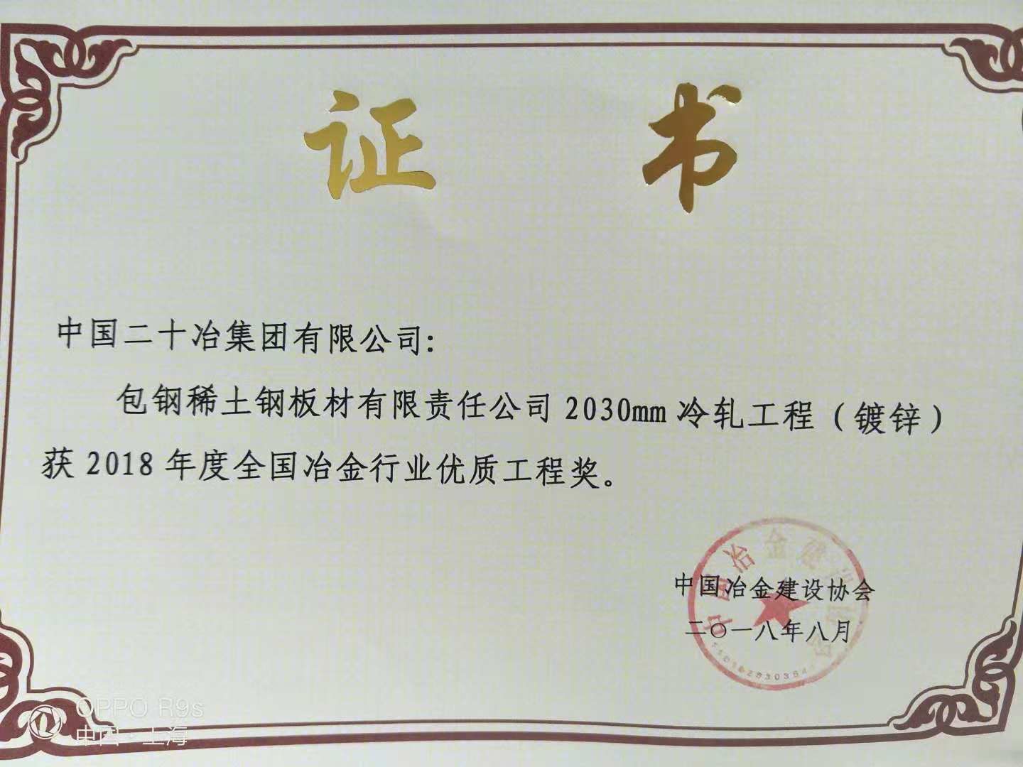 2,030mm Cold Rolling Project (galvanizing) of Baotou Steel Rare-Earth Steel Plate Co. LTD